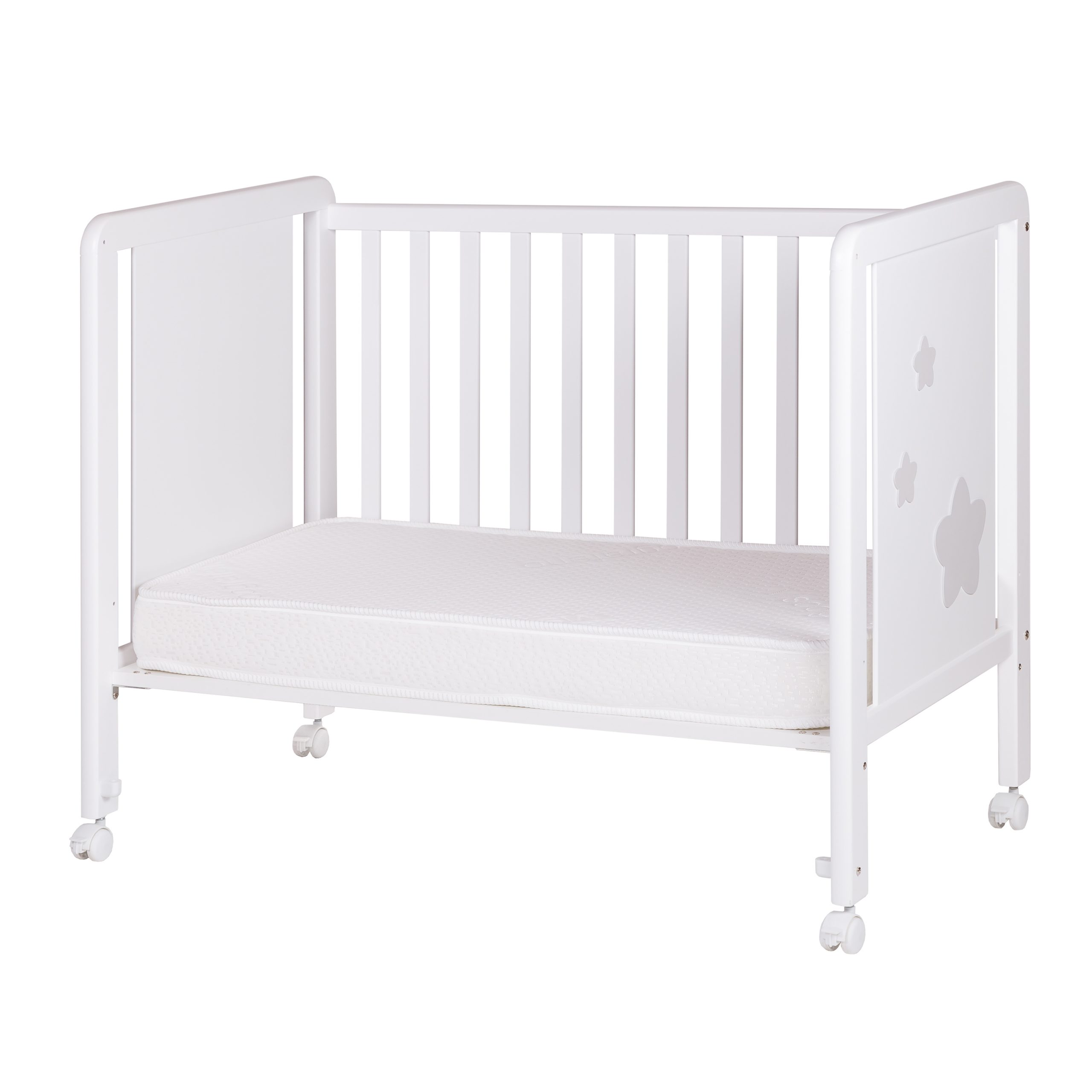 Características: 2 posiciones de somier / barandilla abatible / Con ruedas