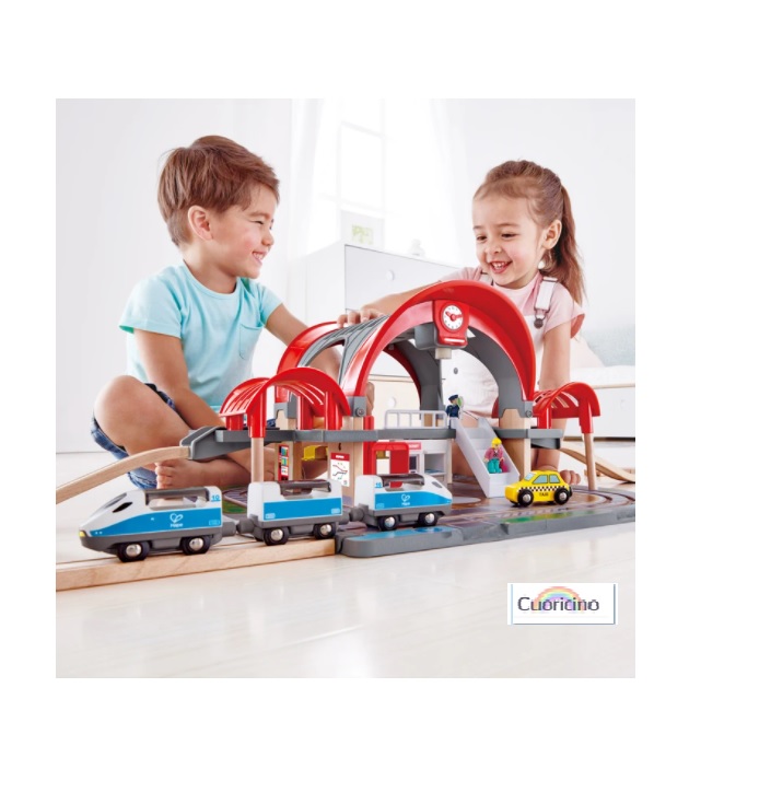 súbelos al ascensor y apresúralos para que cojan rápidamente el tren. Incluye una grabadora para los avisos de la estación, un proyector de destinos y una luz.