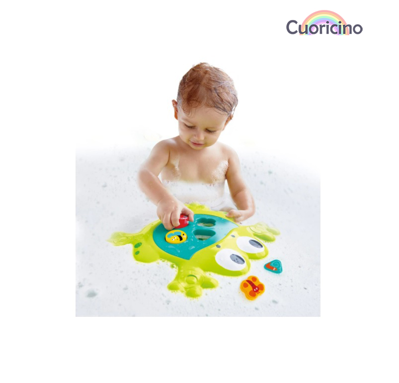 ¡A esta feliz rana le encanta comer en la bañera! Los niños aprenderán sobre formas mientras le dan de comer piezas en forma de insecto.
