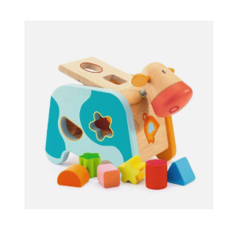 Esta linda vaca es el juego ideal para desarrollar la motricidad fina y el reconocimiento de las formas. Los pequeños se divertirán encajando las 6 coloridas figuras en los lugares que corresponde