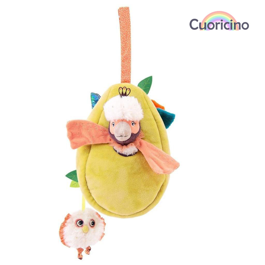 Este nido de pájaros incluye a la «pájara mamá», quien en sus alas tiene papel crujiente. Además, cuando presionas en su vientre podrás escuchar un sonido de pájaro. ¡Pero no está sola! su pequeño retoño también la acompaña, y además sirve de sonajero.