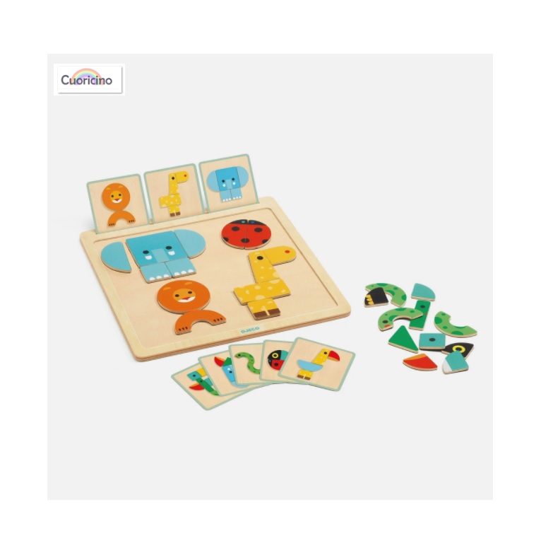 Djeco trae un tablero magnetizado para que puedas armar los animales que se muestran en las tarjetas. ¡También puedes inventar tus propias creaciones!