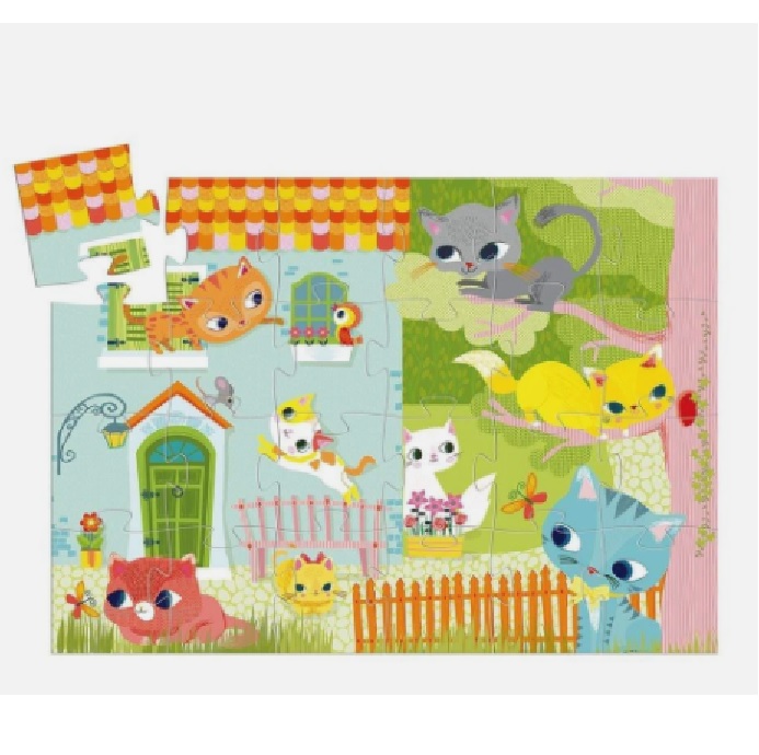 Este es un rompecabezas maravillosamente ilustrado del gato Pachat jugando con sus amigos. Son 24 piezas para armar una linda ilustración. Viene contenido en una hermosa caja, ideal para regalar.