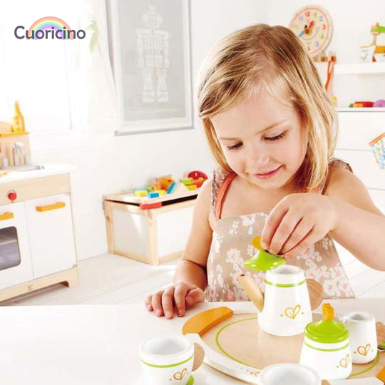 Set de té para dos personas, que incluye tazas, tetera, jarrito para la leche, bolsitas de té, bandeja y utensilios.